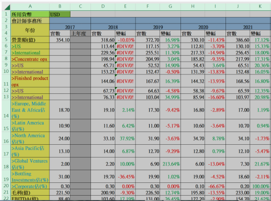 【圖4】--2021財年可口可樂盈利分佈圖