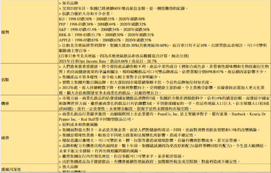 就算以整體業務的純利率比較,集團平均20-25%。而百事公司,約在10%上下浮沉,可見整體賺錢能力上,可口可樂集團同樣佔有優勢。