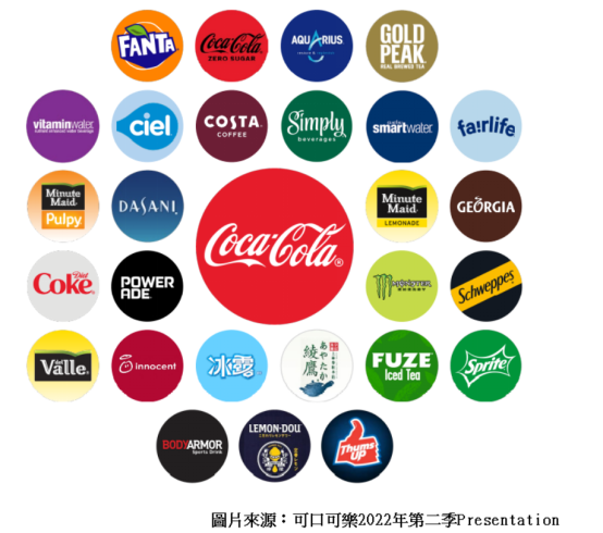 目前公司旗下品牌組合,包括可口可樂、雪碧、芬達和其他碳酸類飲品。