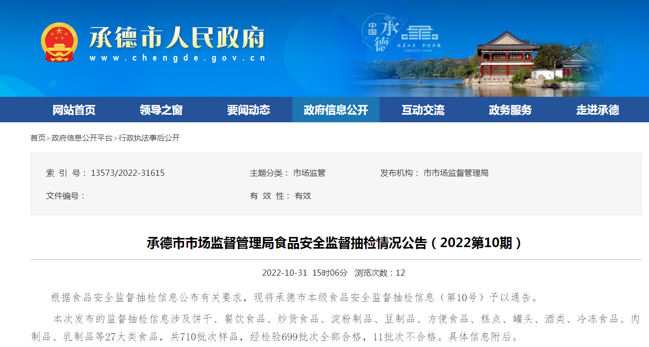 中國質量新聞網訊 近日,河北省承德市市場監管局發佈2022第10期食品安全監督抽檢情況。本期抽檢51批次調味品,合格51批次。