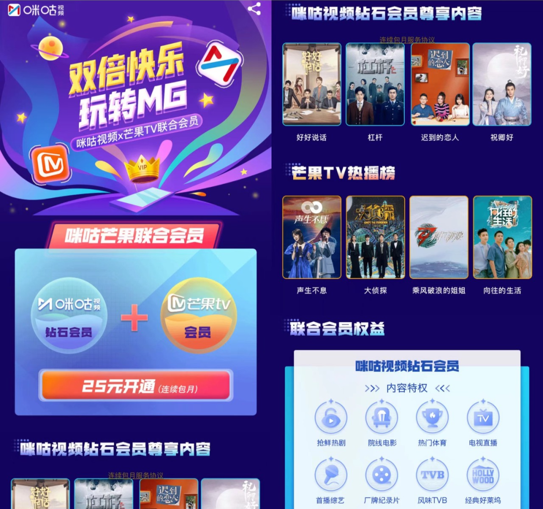 自從誕生以來,咪咕視頻藉助中國移動幾乎就能直接觸達每一個移動用户,中國移動黃金會員每月都能夠免費領取咪咕視頻會員,部分流量套餐內嵌咪咕視頻的定向流量,甚至如果選擇移動寬帶的電視機頂盒,那麼很可能會受到限制,只能選擇用咪咕視頻進行投屏操作。