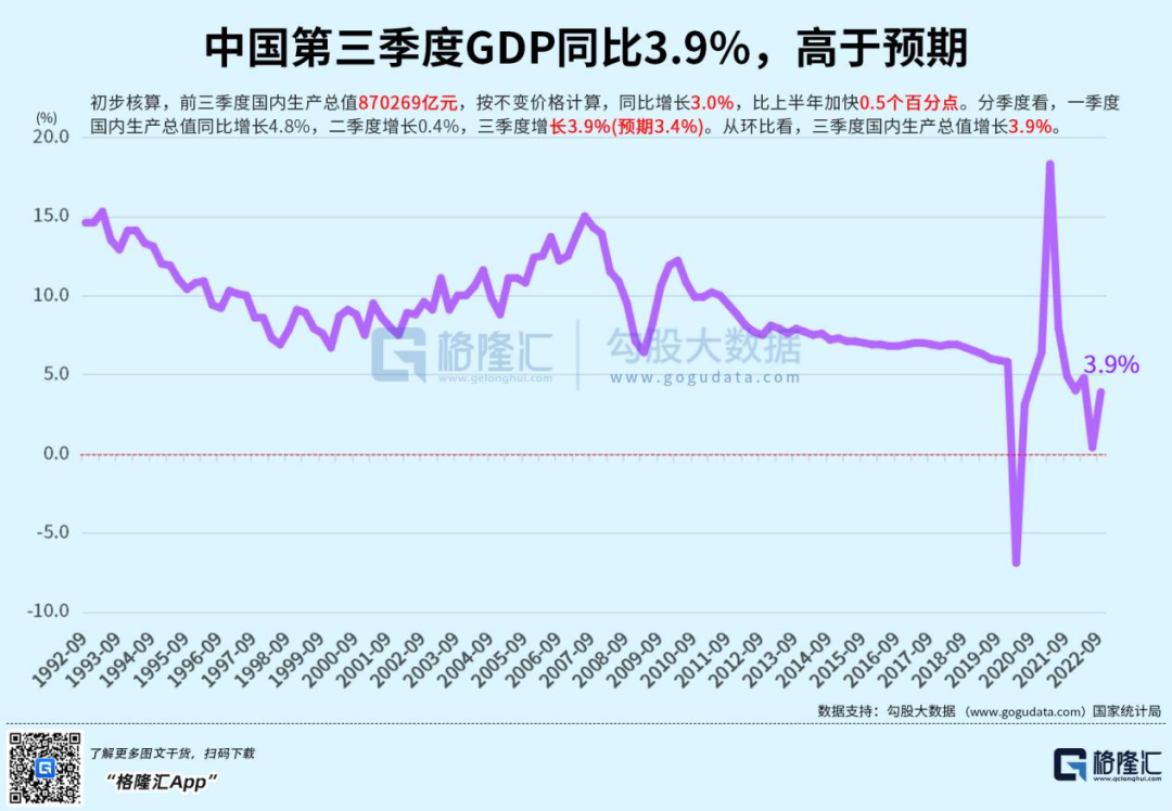 不久前公佈的第三季度經濟數據,GDP同比增長率達到3.9%,超出了預期。