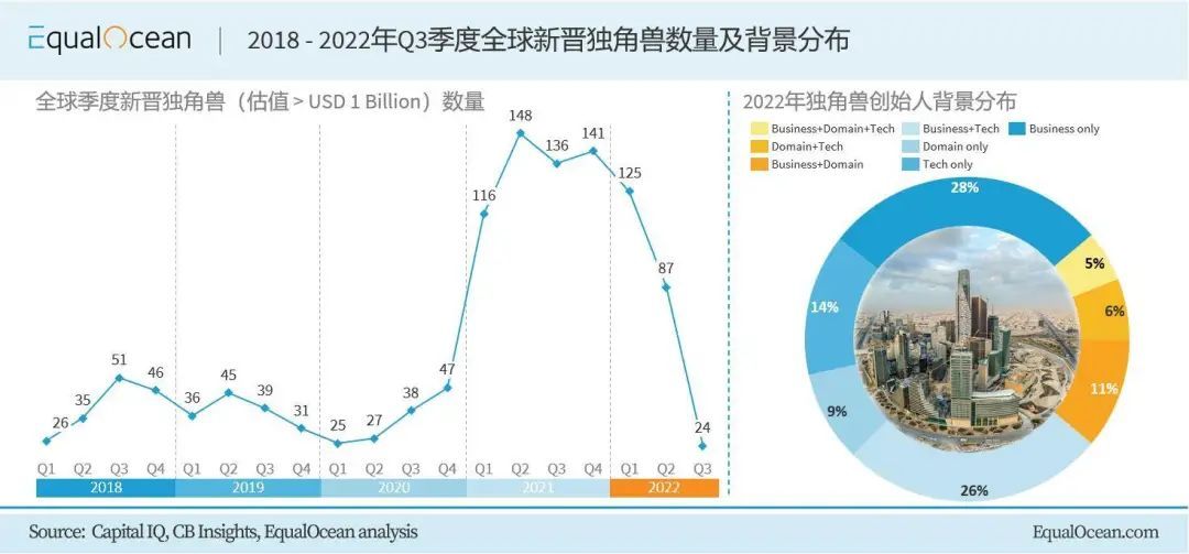 2021年是全球新晉獨角獸數量「井噴」的一年,12個月內在全球範圍內涌現了541家不同大小不同關注度的獨角獸,其中不乏一些耳熟能詳的名字,比如Klarna、FTX、Mollie和Revolut。根據Techcrunch的數據和EqualOcean的分析,2021年全球風險投資總額為 6430 億美元,相比2020 年的 3350 億美元同比增長 92%。