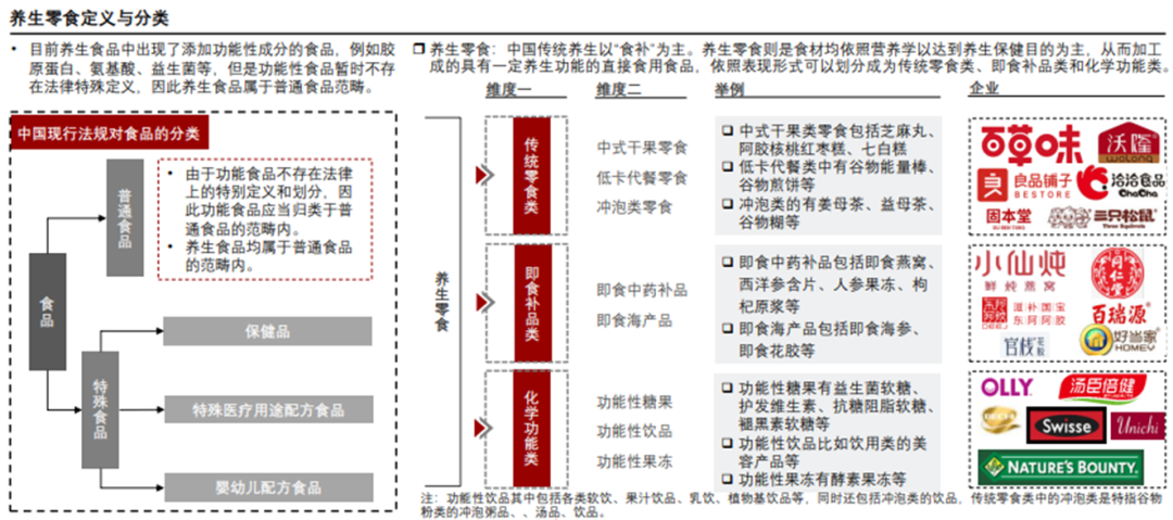 同時,近年來已有越來越多的國內創業型玩家,瞄準功能性零食市場,即核心原料來源於各類功能性添加劑,如植物提取物、生物素、維生素、膠原蛋白肽、酵素等,這是與傳統養生零食最本質的區別。