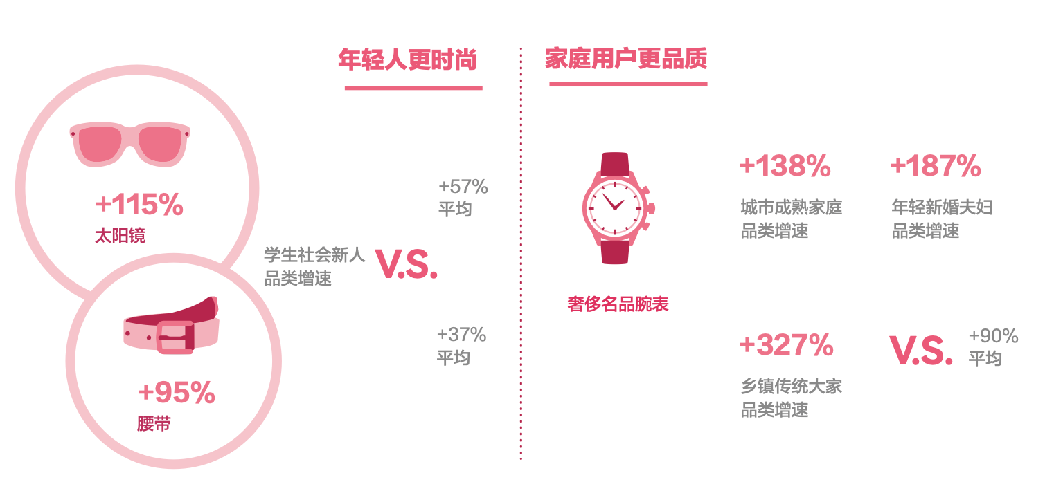 對年輕消費者來説,包括學生社會新人、獨立悦己男女,年輕新婚夫婦在內,他們的消費觀念比起已育羣體或年長者,都更為張揚和外化。