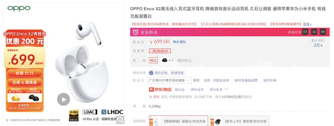 另外,一年多更的更新頻率也在一定程度上降低了用户的購買意願。一般來説消費者並不會主動「升級」耳機,除非新款耳機有像主動降噪這樣的關鍵功能升級,又或者舊耳機的電池壽命「日薄西山」。但一年兩次的電商大促又打亂了OPPO真無線產品線原本那一年多更的產品規劃。