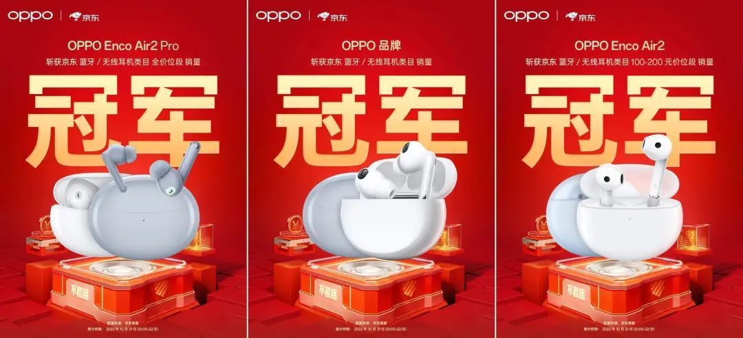趁着雙十一的機會,不少國內真無線耳機品牌也都開始下半年「最大」的促銷活動,比如OPPO就在雙十一期間就成功登上了京東無線耳機類目的銷量榜冠軍,另外OPPO Enco Air2和Enco Air2 Pro也分別拿下了無線耳機類目100-200元價位銷量冠軍和全價位銷量冠軍的桂冠。