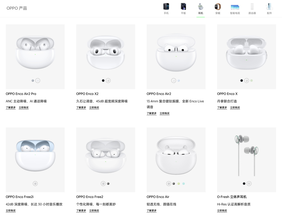 我這里不是説家族式設計不好,畢竟一套相同的設計語言可以用來提高品牌的感知度。再說了,AirPods一套外觀設計即使橫跨多年也依舊是真無線耳機品類中的潮流和不少Android手機品牌推出耳機是借鑑的對象。但當OPPO 9款耳機都長差不多一個樣時,事情就是另一種情況了。高度相似的耳機不僅在消費者挑選耳機時引入了額外的困難,同時也在一定程度上削弱了新品耳機的銷量。
