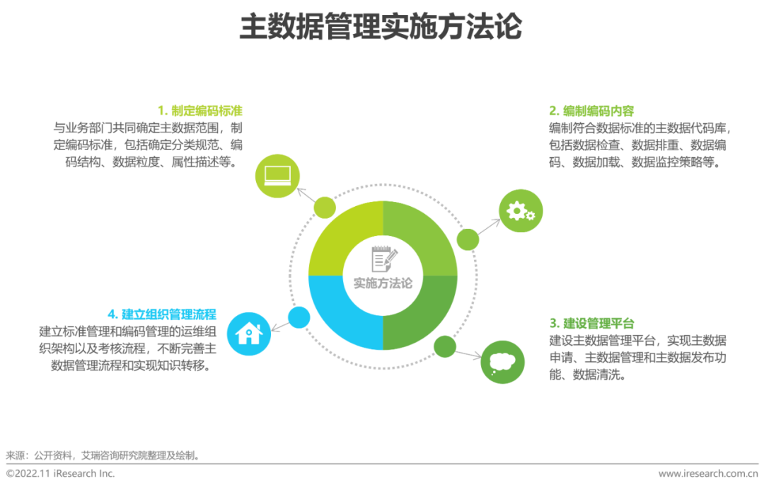 主數據管理用於提供完整、一致、準確、相應的主數據來源,以支撐跨部門、跨系統數據融合應用,四大關鍵功能為生命周期管理(編寫主數據間的層次、關係及分組)、質量管理(建立主數據質量基線和評估改進程度)、協調功能(主數據管理系統與業務系統集成)以及分析功能。主要解決方案廠商包括IBM、Informatica、Stibo Systems、SAP等國外大廠,產品成熟,但產品靈活性和擴展性不足,同時國內廠商如用友、浪潮等也在此領域崛起,不斷靈活創新,更貼近企業需求。