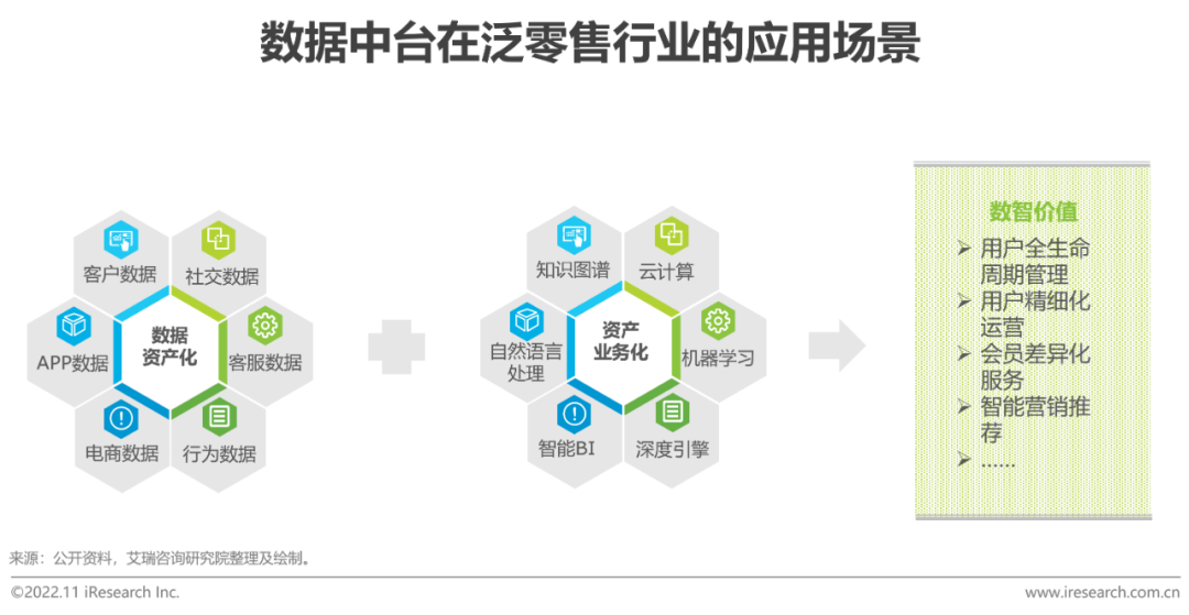 數據中臺打通泛零售企業內部各系統數據,標準化數據模型和研發標準,實現從數據採集、匯聚、清洗、調度到數據質量管理的全流程工具化和平臺化,幫助零售企業打通採購系統、業務系統、運營系統和銷售系統的數據,進行數字化的供應鏈管理;運用數字媒介開展業務和觸點佈局,跨業務域、跨渠道、跨產品、跨區域的綜合分析,精細化運營;通過埋點、實時數據,線上線下異構數據採集,全量及全維度的捕獲用户行為,提供決策支撐,優化用户體驗。