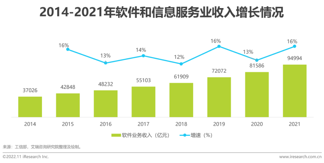 大數據技術和應用成為國家基礎性戰略支撐,是打造數字經濟新優勢、加快數字社會建設步伐、提高數字政府建設水平的重要力量,因此大數據核心技術創新和產品升級受關注程度高,產業發展具備充足的空間和潛力。隨着5G、AI、物聯網等技術的普及應用,數據應用場景被釋放,數據源不斷豐富,數據量快速攀升。雲原生技術使企業組織能在公共、私有和混合雲等現代動態環境中構建和運行可擴展的應用程序,是繼雲計算之后,數據基礎設施領域實現新增長的重要拐點。在基礎軟件方面,數據中臺、數據治理、數據安全等產品引領細分市場發展。在應用軟件方面,BI、可視化、圖像分析等產品也備受關注。從企業和行業應用來看,企業更加註重運用數據技術向精細化運營、信息化決策演進。行業應用聚焦於軟件和信息技術服務、互聯網等領域。