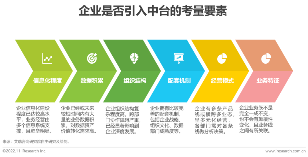 儘管隨着技術進步,中臺實施難度逐漸降低,但仍然不是所有企業都適合中臺建設。中臺匯聚、打通的特點,要求企業已經或者在未來較短時間內會有大量的數據積累和應用。如果企業體量不大,或者企業體量雖大但業務單數較少,在數據需求出現時,一對一地解決,可能性價比更高。中臺複用的特點,要求企業業務既不是完全一成不變的,也不是多業務線毫無關聯的,如果企業業務非常穩定幾乎無變化,則中臺建設的必要性不足。中臺為整體解決方案的特點,要求企業有相應的配套機制,包括企業戰略、組織架構等,如企業沒有專門的數據部門僅靠業務部門,則企業數據建設容易陷入「公地悲劇」:每個業務部門都想使用數據,但誰都不願貢獻、建設、治理數據。總之,中臺是一個基礎設施,其以底層的穩態保障上層的敏態,以公共的建設保障各業務線的使用,以當前的重投入保障未來的高產出。凡企業不是此類規劃的,均不完全適合,可以用中臺里的某個模塊如數倉、數據湖或主數據治理等先行解決當前問題。