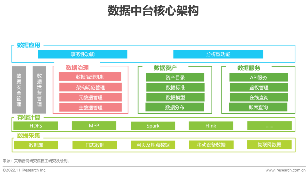 數據中臺是一種數字化綜合解決方案。數據中臺採集、計算、存儲和處理海量數據,保證數據的標準統一和口徑一致,建立全域級、可複用的數據存儲能力中心和數據資產中心,組件化服務模塊,提高數據共享和複用能力,靈活高效地解決前臺的個性化需求。狹義來看,數據中臺是一套實現數據資產化和服務複用的工具;廣義來看,數據中臺是一套運用數據推動企業數字化轉型升級的機制和方法論。相較數據工廠時代,數據中臺立於業務數據的積累沉澱,破於數據收集、整合、分析及應用的生態閉環。數據中臺始於業務,用於業務,循環往復的理念與數據價值時代下數據資產價值最大化的目標相契合。