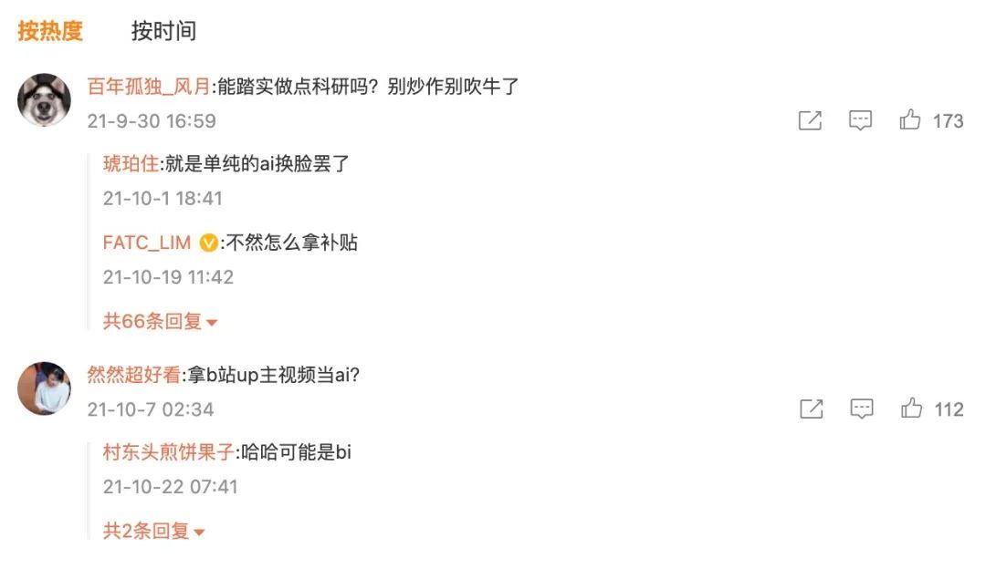 本身很多普通用户在相關概念尚未普及的情況下,就難以分辨虛擬人的真假,而官方又反覆橫跳,時而説「並非僅僅AI換臉」,時而在評論區直接否認AI換臉,更是讓大家雲里霧里。