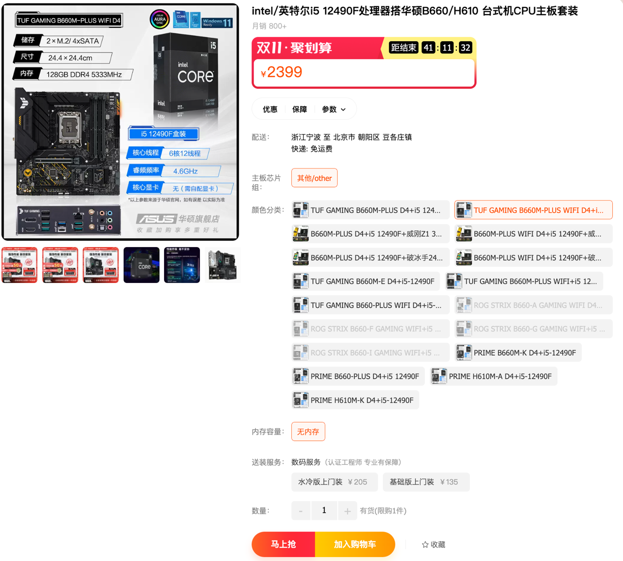 且天貓商城還有華碩B660重炮手WIFI D4主板搭i5-12490F處理器套包,雙十一活動價2399元。購買鏈接:https://detail.tmall.com/item.htm?id=672914102948&skuId=4845774061017