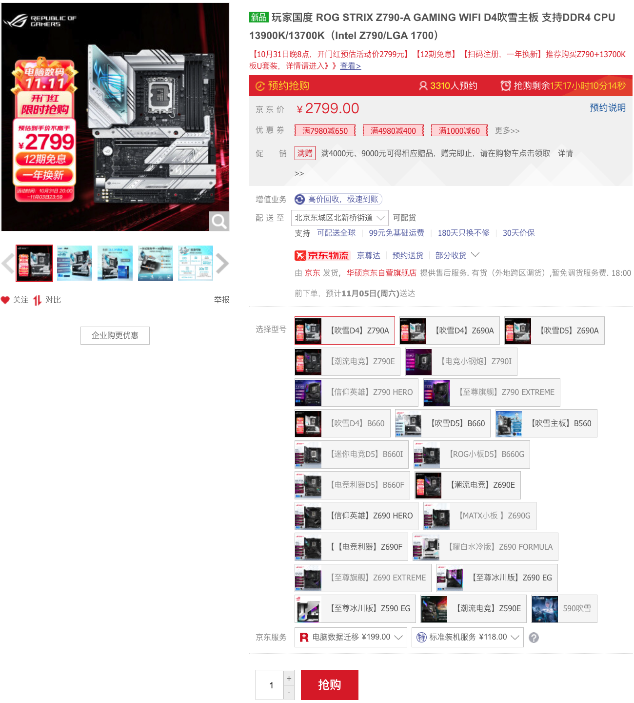 華碩Z790吹雪D4主板——開門紅銷量NO.4搶購價2799元