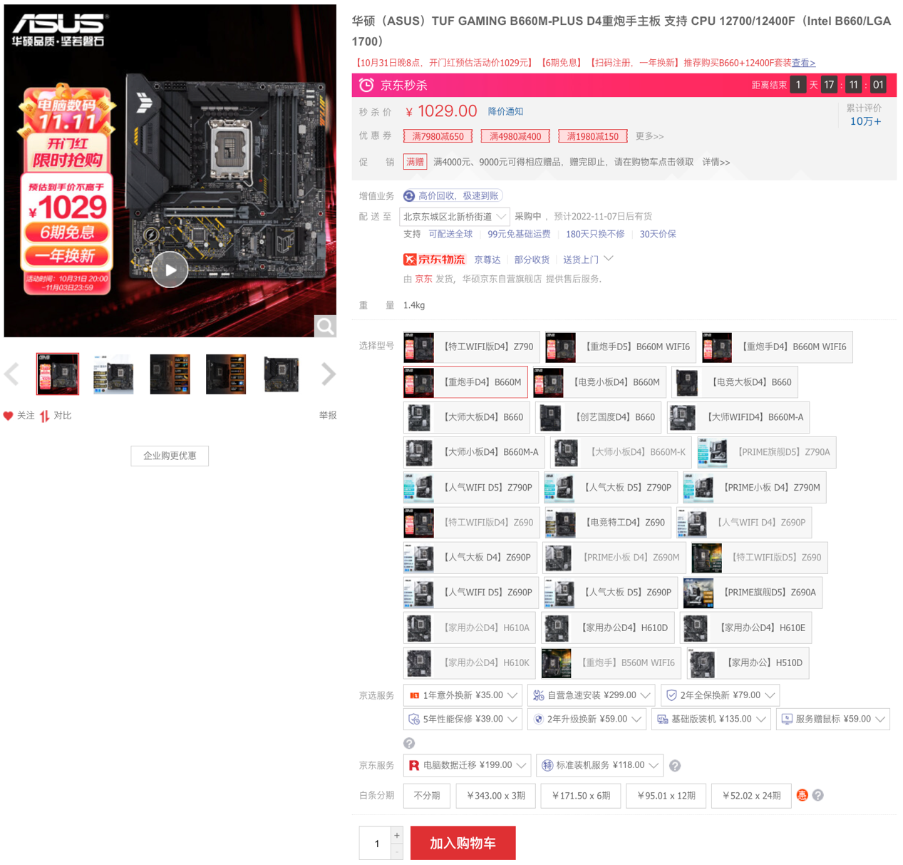 華碩B660重炮手WIFI D4主板——開門紅銷量王秒殺價1079元