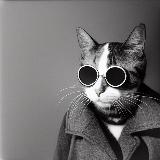 提示:「a black and white photograph of a cat wearing sunglasses by annie lebovitz, highly-detailed」(作者使用DreamStudio製作的圖片)