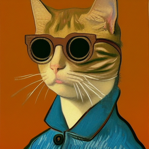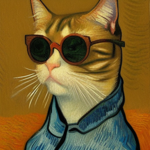 提示:「oil painting of a cat wearing sunglasses by van gogh」(作者用 DreamStudio 製作的圖片)