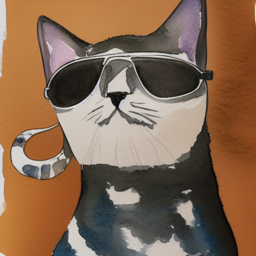 提示:「watercolor painting of a cat wearing sunglasses」(作者用DreamStudio製作的圖片)