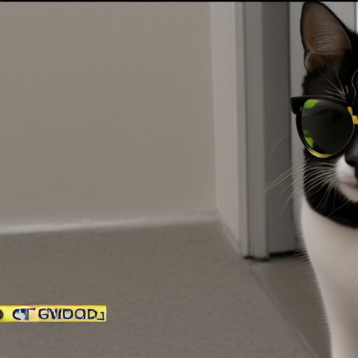 提示:「CCTV still of a cat wearing sunglasses」(作者用DreamStudio製作的圖片)