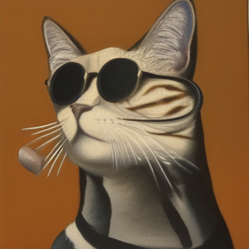 提示:「oil painting of a cat wearing sunglasses by max mustermann」(作者用DreamStudio製作的圖片)