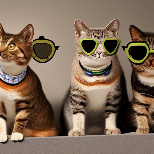 提示:「three cats wearing sunglasses」(作者用DreamStudio製作的圖片)。