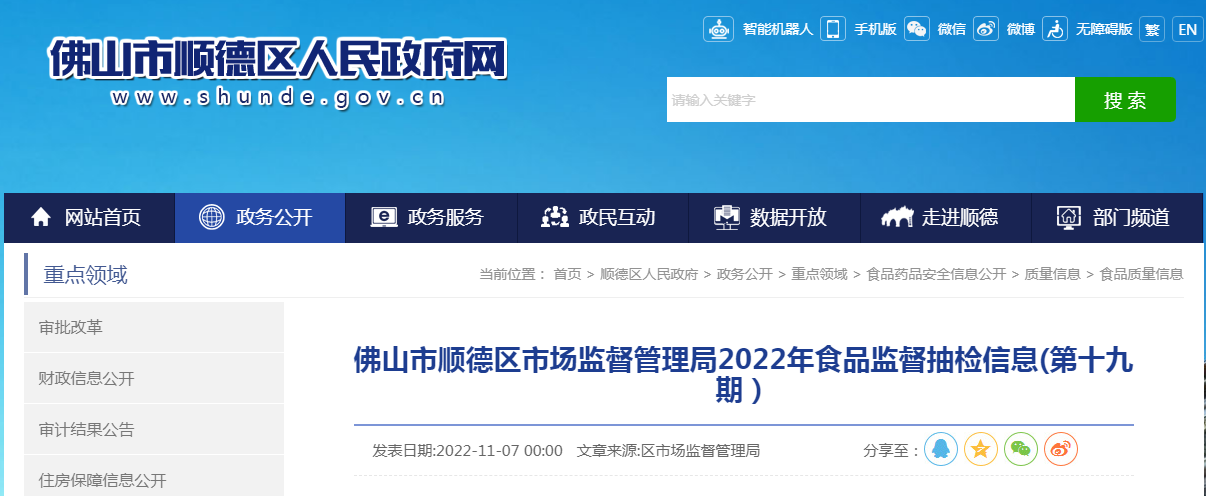 中國質量新聞網訊 近日,廣東省佛山市順德區市場監管局發佈2022年食品監督抽檢信息(第十九期)。本期共抽檢飲料樣品17批次,合格17批次。
