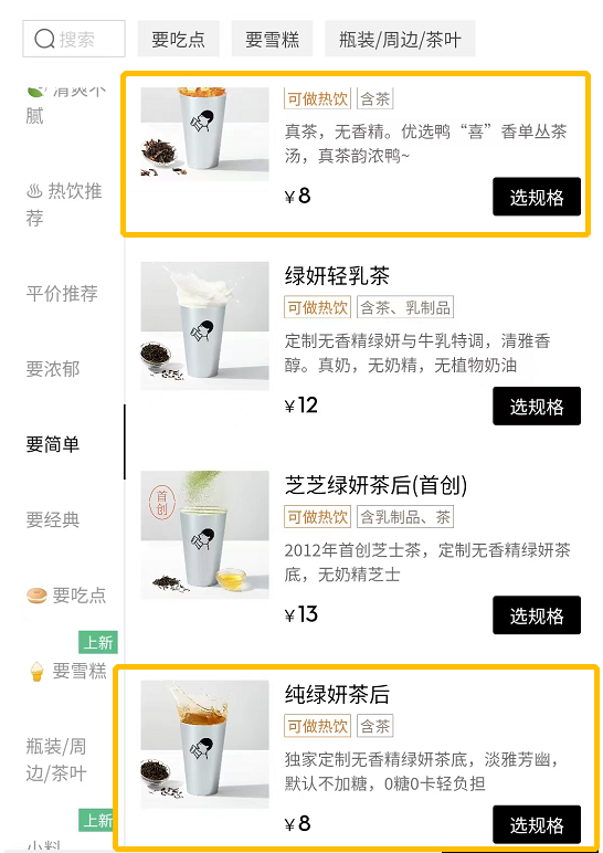 與喜茶相比,新品牌喜小茶有兩個明顯的特點: