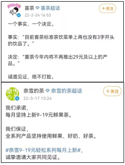 對於喜茶的「自降身價」,這些高端玩家們不但沒有嗤之以鼻,還紛紛呼應。