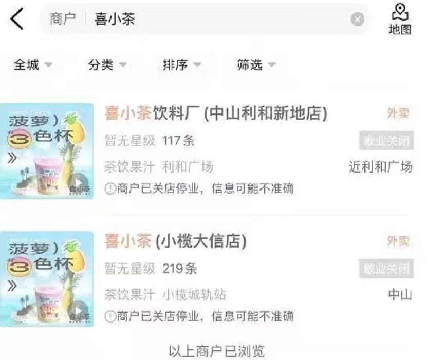 而從今年4月開始,喜小茶深圳、佛山、東莞等地方門店就開始陸續關閉,隨着最后一家門店的關閉,喜小茶算是徹底退出了奶茶市場。