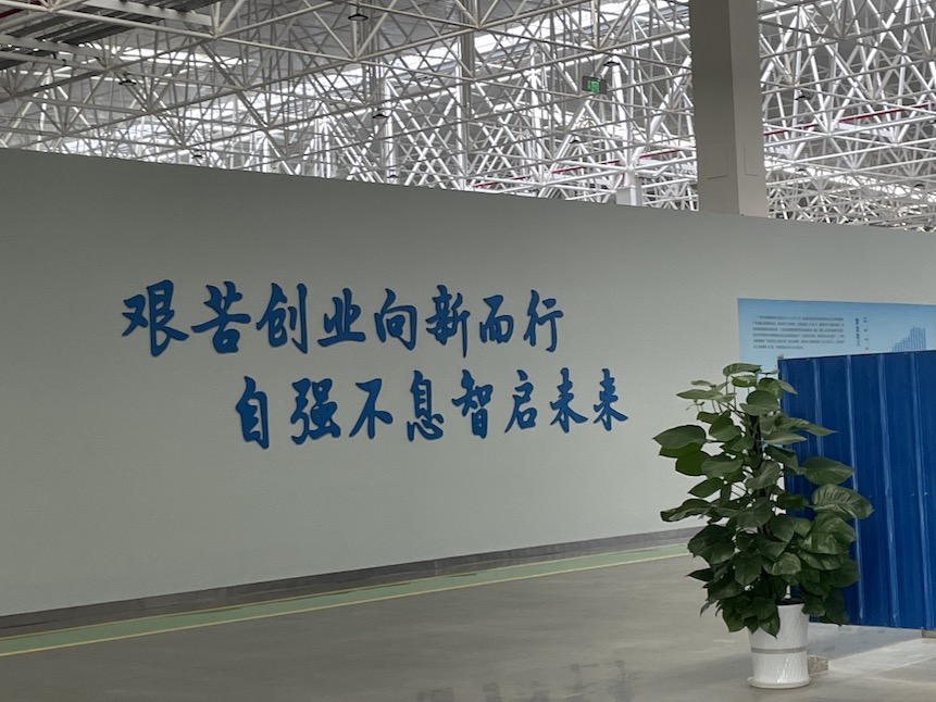 五菱新能源汽車基地里的宣傳標語 圖片來源:時代財經攝