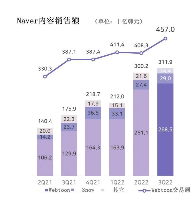 以Naver Webtoon為核心的內容部門銷售額達3119億韓元(16億元),同比增長77.3%,保持了良好的增長勢頭。
