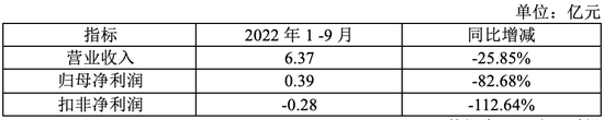 據粵開證券三季報,今年前三季,該公司營業收入同比下降25.85%,歸母淨利潤同比下降82.68%,扣非淨利潤更是同比下降112.64%。實際上,該公司過去兩年同期的歸母淨利潤增速已呈放緩趨勢,今年大幅下降至出現負增長。