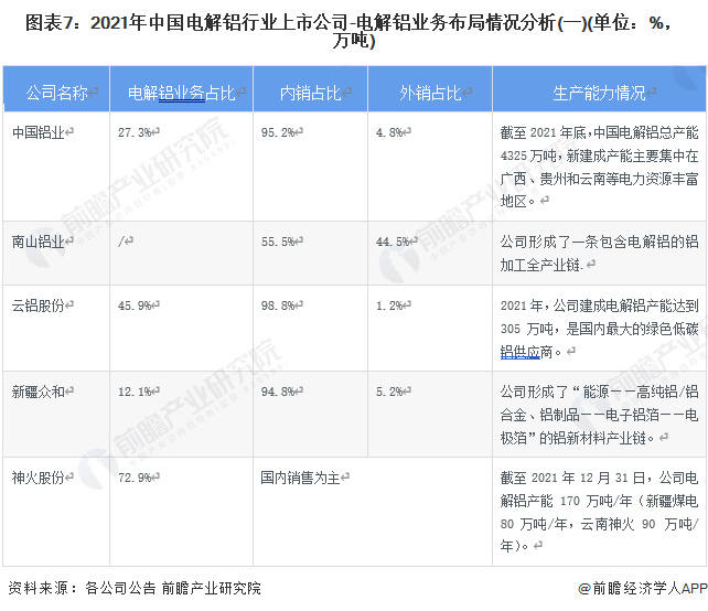 從電解鋁行業上市公司業務佈局來看,除南山鋁業外,我國電解鋁企業的電解鋁業務銷售佈局基本為國內地區。並且我國大部分的電解鋁行業上市公司均還在提升自身電解鋁的生產能力。