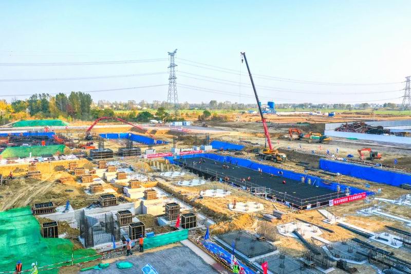 澆灌車揮舞着「長臂」,將混凝土源源不斷地澆築到作業平臺;裝載機、壓路機、酒水車來往穿梭,現場300多名工人忙碌不停……立冬已至,寒意漸濃,而位於安徽亳州利辛縣胡集鎮的板集電廠二期2台66萬千瓦燃煤機組工程建設現場,卻是熱火朝天的繁忙景象。