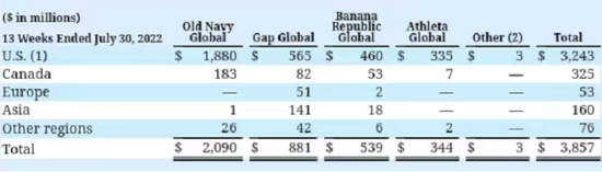 截至7月30日的三個月內,GAP集團的營業收入同比下滑8.41%至38.57億美元;淨虧損錄得4900萬美元,較去年同期的2.58億美元下滑118.99%。而在亞洲市場,其集團總營收仍不足全球總營收的5%。