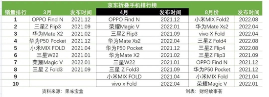 根據京東平臺摺疊手機3、4以及8月份不同摺疊手機的銷量統計發現,摺疊手機銷量的C位一直在改變。
