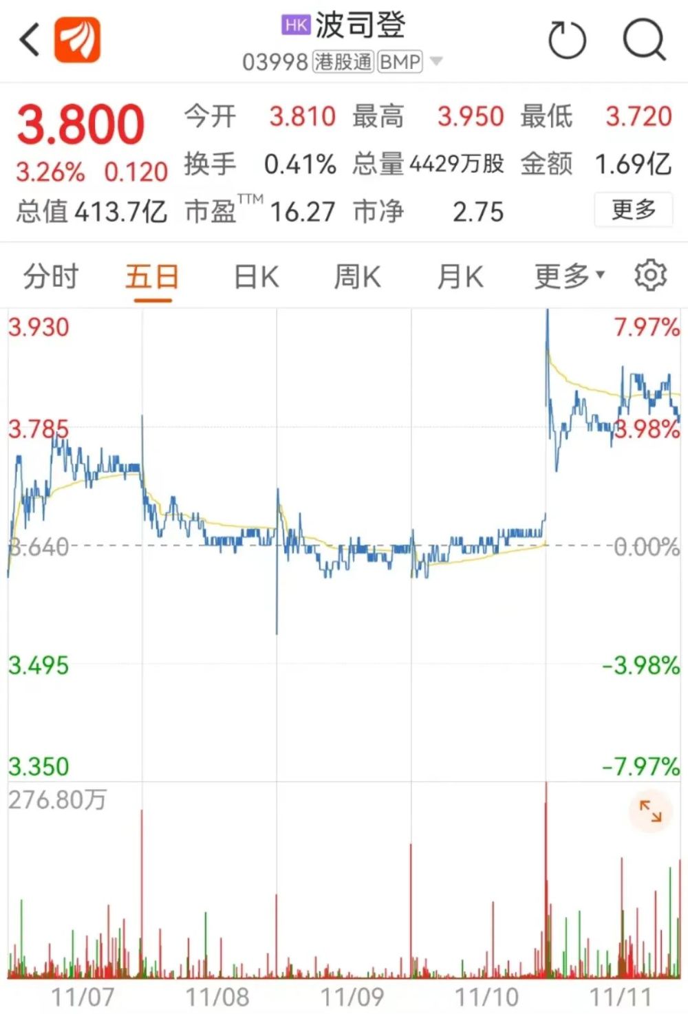 自雙十一減價惹爭議后,波司登又因為年內股價下跌衝上熱搜。據悉,截至2022年11月10日,羽絨服屆的龍頭波司登已經跌至3.68港元,市值約400億港元,相較去年11月最高點,股價跌超4成,蒸發約280億港元(約合人民幣250億元)。