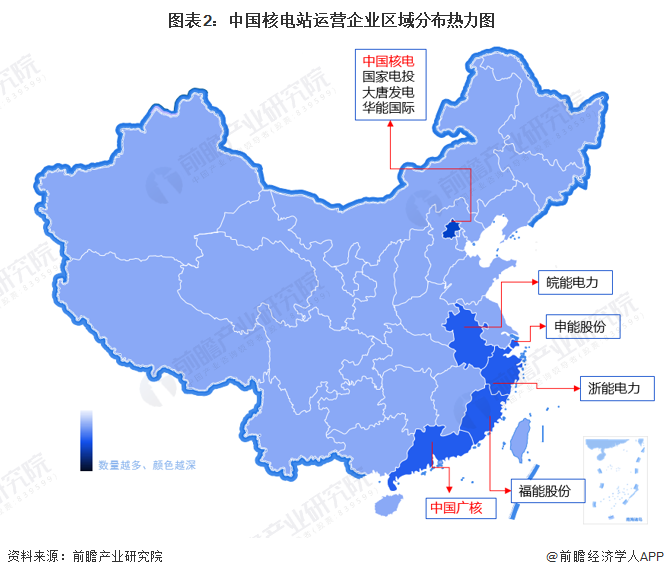 核電行業的上市公司中,中國廣核、中國核電的核電業務佈局最廣,這兩家企業重點佈局在長三角、珠三角地區。其他企業則基本通過參股方式參與核電業務的經營。