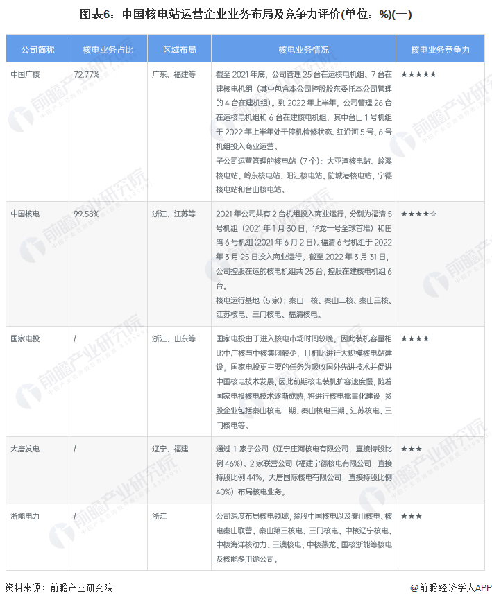 4、中國核電行業企業佈局及競爭力評價