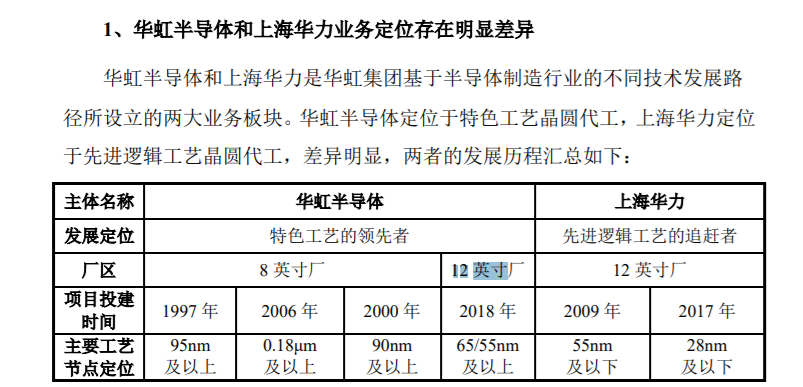 華虹宏力在招股書中表示,華虹宏力定位於特色工藝晶圓代工,上海華力定位於先進邏輯工藝晶圓代工。