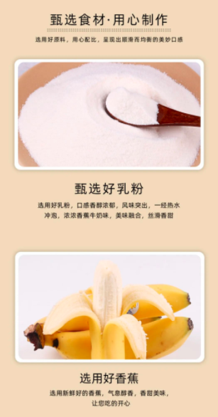 根據購買時的頁面宣傳,該固體飲料甄選好乳粉,選用好香蕉製作而成。