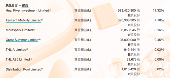 美團2022半年報截圖 騰訊實際控制的美團B類股份