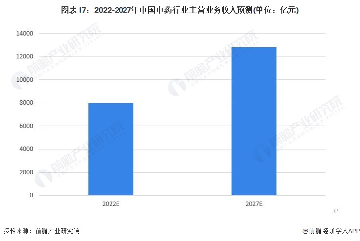 國家發佈的各項中藥產業支持政策表明政府不但將逐步增加對中醫藥產業的投入,扶植中藥產業的建設,還將從根本上保護中藥企業的發展,有利於整個中藥產業水平的提升,預計到2027年中藥行業規模或達到萬億元以上。