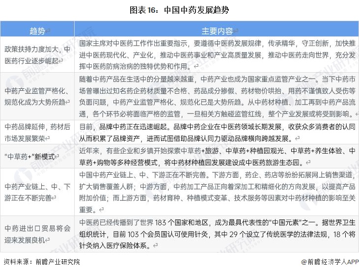 隨着新冠疫情防控的常態化,以及醫保目錄調整,中藥的價值逐漸凸顯,我國政策扶持力度亦加大。未來,重要發展有6大趨勢: