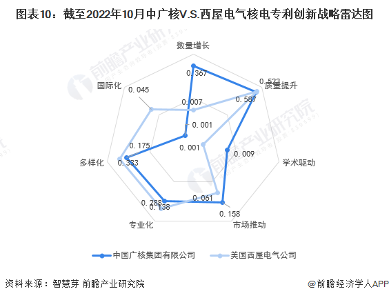 整體來看,中廣核核電技術在數量增長、學會加速驅動、市場推動具有相對競爭優勢,西屋電氣核電技術則在專業化、多樣化、國際化上具有相對競爭優勢。兩者核電技術在質量提升方面相當。