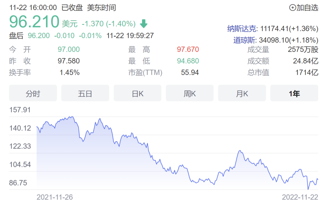 然而在宣佈CEO換人后,華特迪士尼股價在當地時間11月21日大漲6.3%。截至11月22日收盤,迪士尼股價