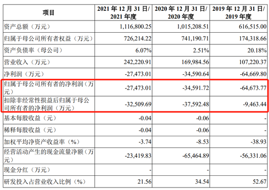 2019年至2021年,瑞聲光學的淨利潤分別為-6.47億元、-3.46億元和-2.75億元,三年累計虧損12.68億元。截至2021年末,公司累計未彌補虧損為19.45億元。