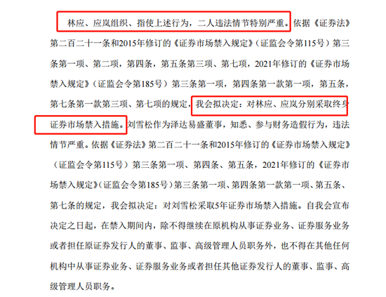 監管部門作出的懲罰是:對澤達易盛、董事長林應實施罰款;對董事長兼實控人林應、對董事會祕書、財務總監、副總經理應嵐分別採取終身證券市場禁入措施。